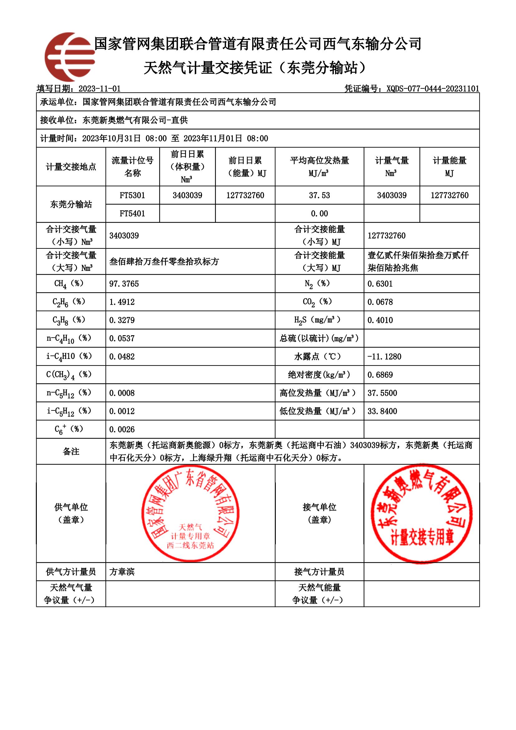 東莞新奧燃?xì)?023年11月份供氣質(zhì)量檢查報(bào)告公示