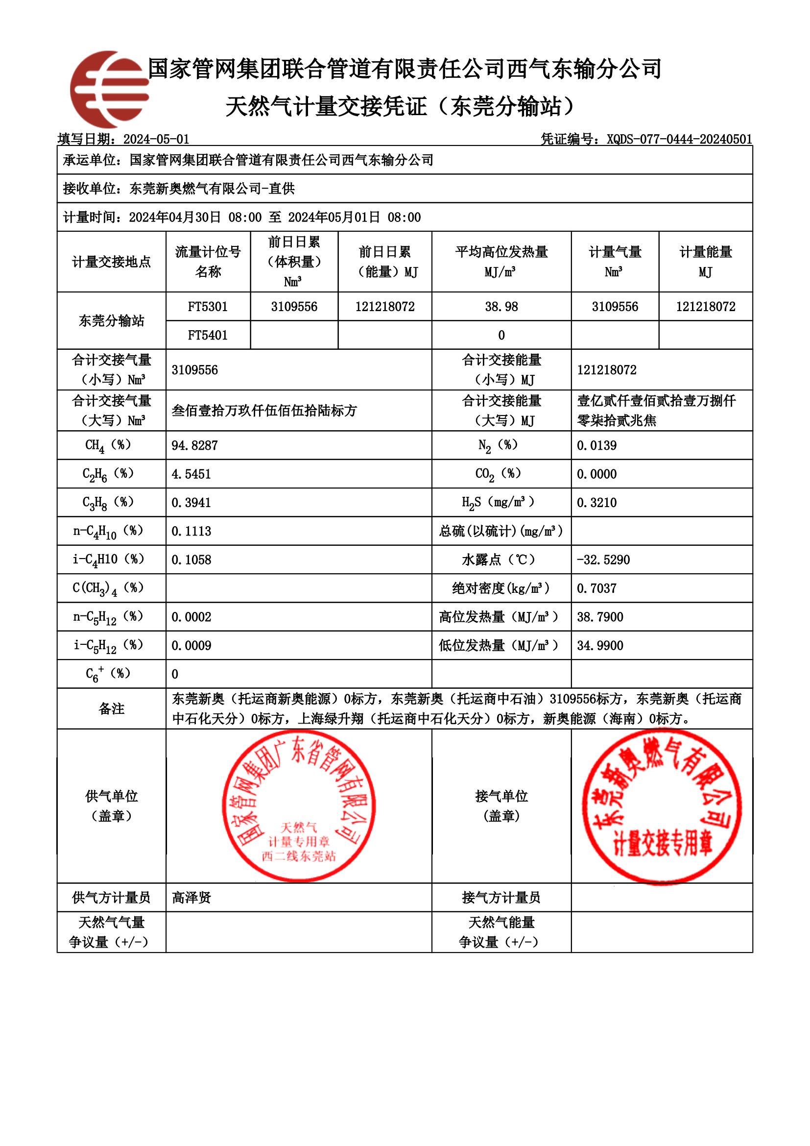 東莞新奧燃?xì)?024年5月份供氣質(zhì)量檢查報(bào)告公示