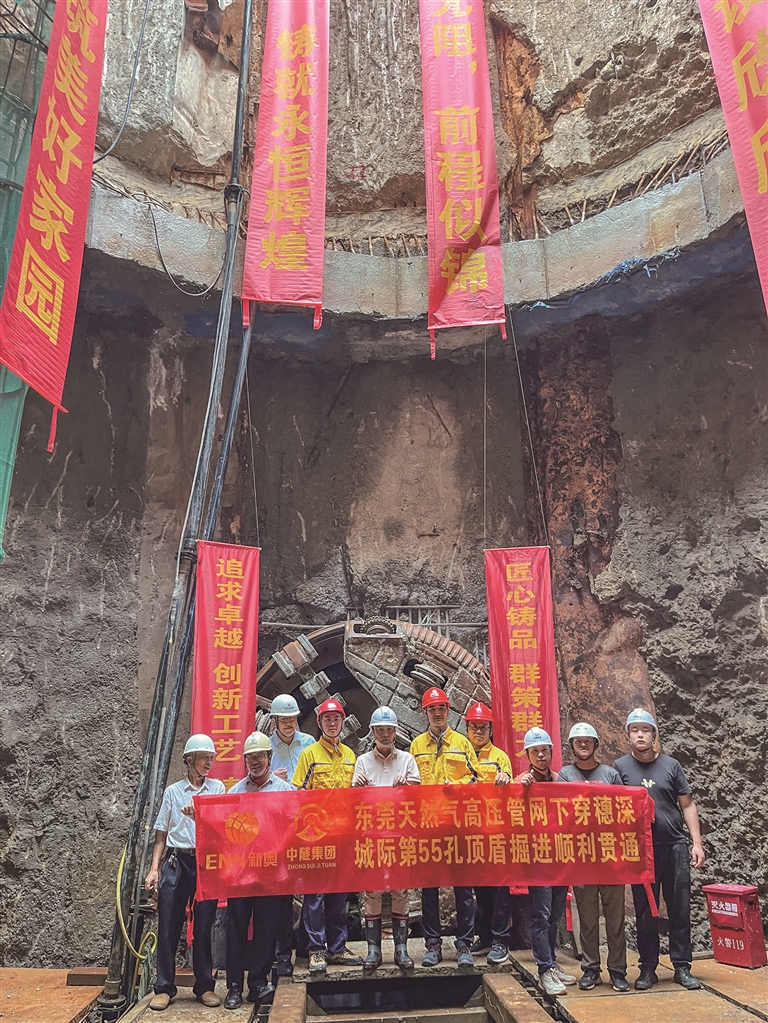 此外,需要挑戰(zhàn)的還有建設(shè)過程中的諸多“攔路虎”“硬骨頭”。這其中,又以下穿穗深城際段為甚。該段全長938米,深度位于水面以下20米,同時(shí)穿越穗深鐵路及寮廈水道,施工難度大,技術(shù)難點(diǎn)多。為高效專業(yè)推進(jìn)項(xiàng)目施工,東莞新奧歷經(jīng)四次嚴(yán)格論證,創(chuàng)新采用國內(nèi)罕見的地連墻做豎井、頂盾做隧道的盾構(gòu)工法,在兩年時(shí)間內(nèi)推動(dòng)項(xiàng)目實(shí)現(xiàn)全線貫通。700多個(gè)日夜里,建設(shè)者們堅(jiān)持“安全第一”的原則,各司其職、協(xié)同作戰(zhàn),經(jīng)常是一身汗、滿腳泥。“一想到大家都在為了一個(gè)目標(biāo)向前沖,奮力拼,就感覺這點(diǎn)苦和累都不算什么了?!闭勂痦?xiàng)目順利完工,盾構(gòu)項(xiàng)目負(fù)責(zé)人朱明鑫開心地說道。
