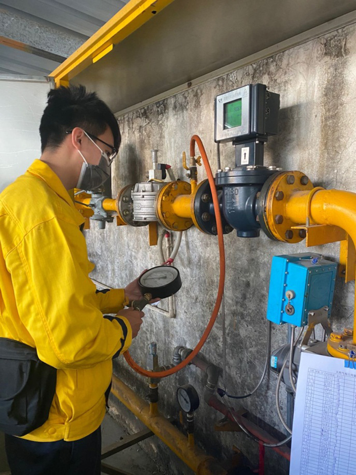 按照往常,這項工作需要3-4個人用一整天時間才能完成??紤]到當(dāng)?shù)丶毙栌眠@批房間作為隔離場所,盧森與林榮虎計劃輪流作業(yè),用半天時間就完成置換通氣工作。在長達4小時的不間斷作業(yè)中,盧森與林榮虎配合默契,分工明確,細(xì)致的做好換表、保壓、記錄、測試等工作,順利完成了任務(wù),也確保了通氣質(zhì)量。面對他人的稱贊,盧森卻覺得不足掛齒,“我們沒有考慮太多,用戶的需求就是命令,這是我們的本職工作”。