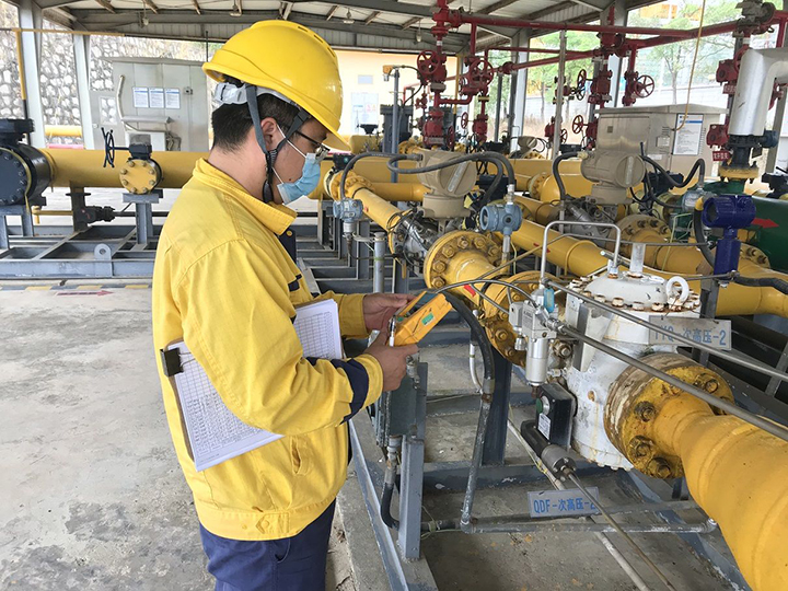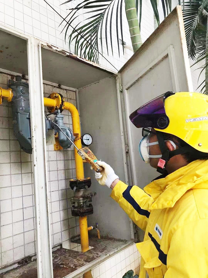 茶山運營網(wǎng)格綜合維護工何柱輝在彩田食品公司進行燃?xì)鈸屝?/span>
